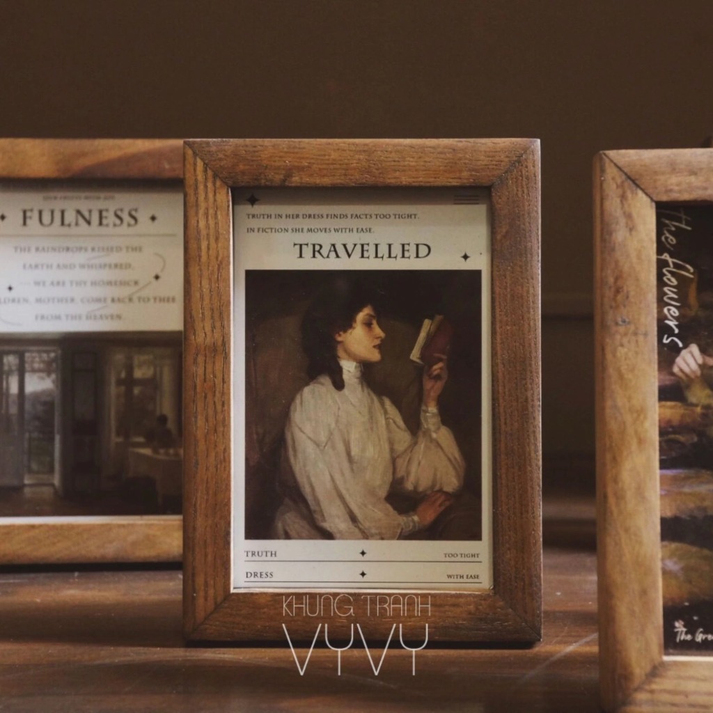 Bộ gồm 3 khung gỗ kích thước 10x15 cm tặng kèm tranh in Romance ngẫu nhiên