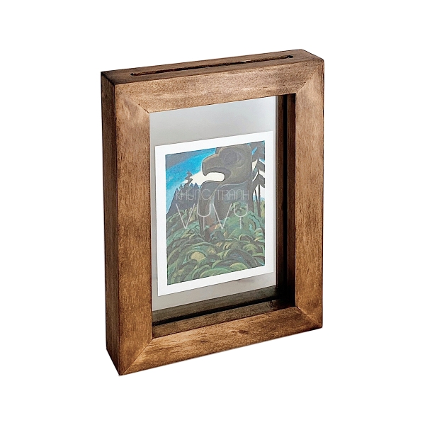 Khung gỗ với thiết kế đặc biệt có thể tự đứng, có khe phía trên để thả 2 tấm kiếng trong suốt, dùng trang trí tranh ảnh độc đáo hoặc làm hoa cỏ ép khô...Khung gỗ thông được làm hoàn toàn thủ công từ gỗ thông tự nhiên, màu tự nhiên phủ mờ hoặc màu sơn giả cổ, bề mặt gỗ láng mịn và được xử lý chống ẩm, gồm 2 lớp kiếng, móc treo tường.
