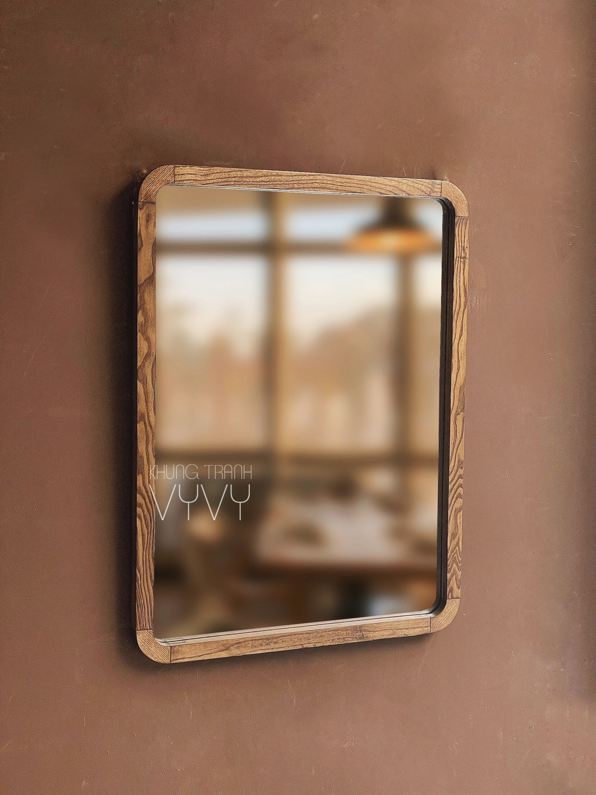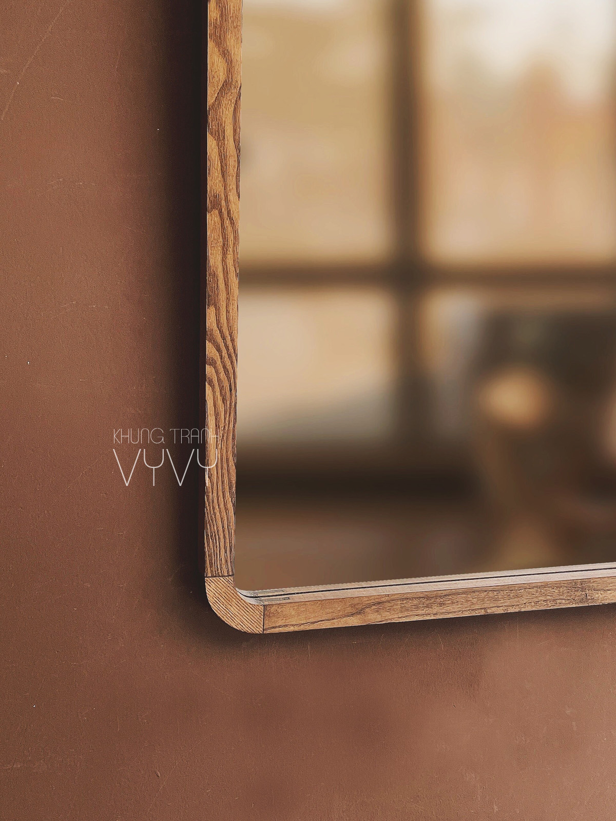 Khung gương gỗ tần bì bo góc, viền gương được làm hoàn toàn thủ công từ gỗ tự nhiên với gỗ tần bì cứng và chắc chắn, vân gỗ nhuyễn và góc bo uốn cong xinh xắn, tỉ lệ gương đẹp, chất gương sắc nét độ bền cao... thích hợp trang trí bàn console, phòng khách, phòng ngủ, cửa hàng, homestay, spa& resort, studio.. ấn tượng