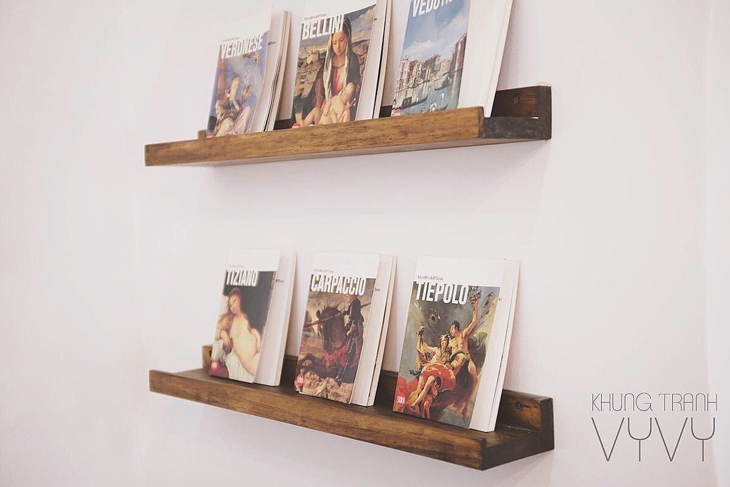 Mẫu thanh gỗ treo tường, hay còn gọi là kệ khung tranh dùng trưng bày khung tranh, tạp chí, đồ trang trí nhỏ gọn..., thanh gỗ có gờ phía trước để giữ đồ trưng bày không bị trượt. Bắn trực tiếp lên tường không cần chân đỡ.